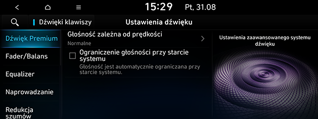 - [Priorytet nawigacji]: Zmniejsza głośność wszystkich innych dźwięków podczas odtwarzania zaleceń nawigacji.