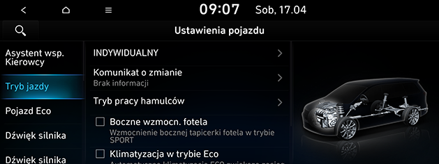 - [INDYWIDUALNY]: Konfiguruje tryb jazdy w oparciu o wybory użytkownika.
