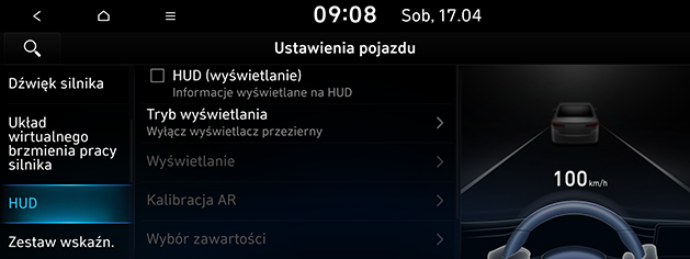 - Naciśnij [SETUP] > [Pojazd] > [Wyświetlacz HUD].
