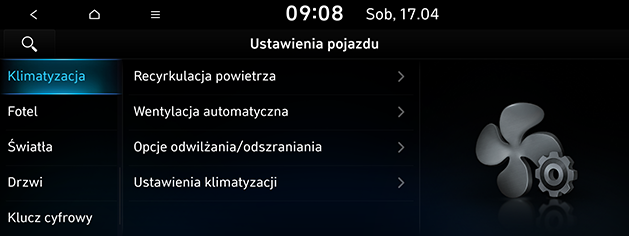 - Naciśnij [SETUP] > [Pojazd] > [Klimatyzacja].