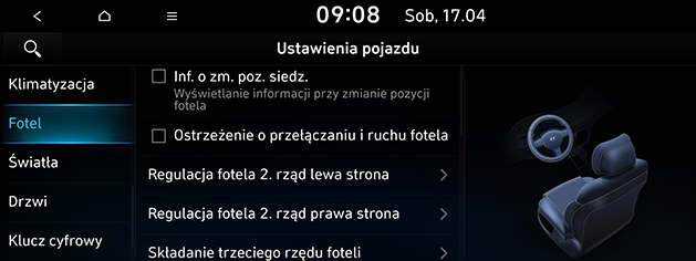 - Naciśnij [SETUP] > [Pojazd] > [Fotel].