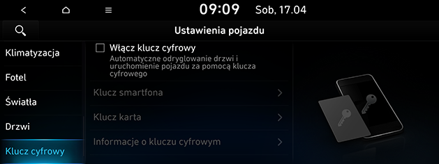 - Naciśnij [SETUP] > [Pojazd] > [Klucz cyfrowy].