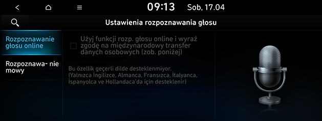 To menu służy do ustawiania opcji rozpoznawania głosu. W zależności od modelu, wyposażenia opcjonalnego i kraju niektóre z przedstawionych funkcji i obrazów mogą się różnić od rzeczywistych.