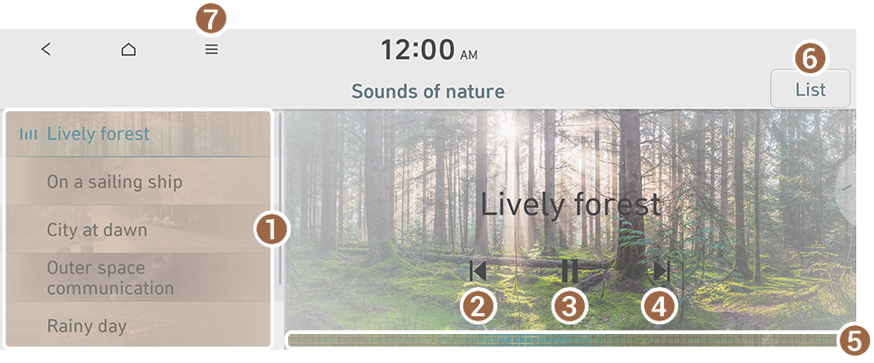 - On the All menus screen, press Media ▶ Sounds of nature.