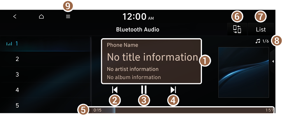On the Bluetooth audio playback screen, press