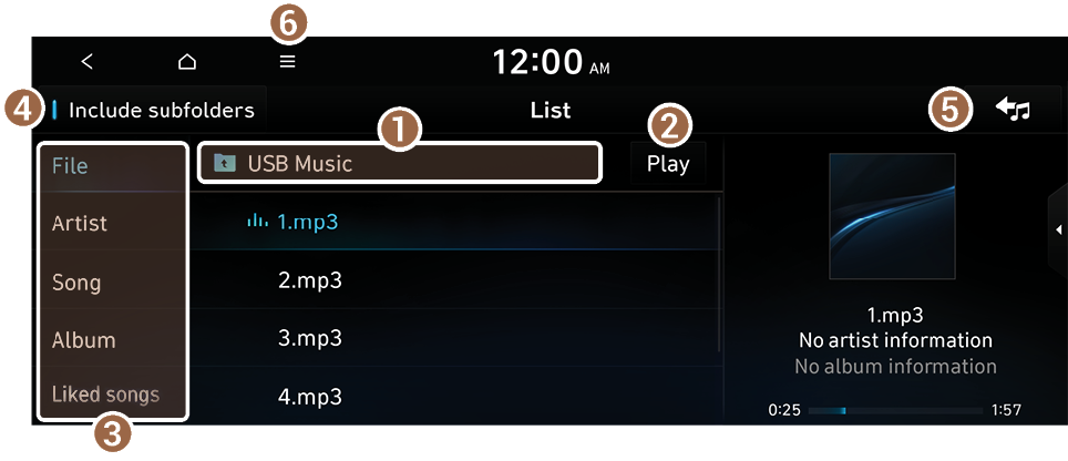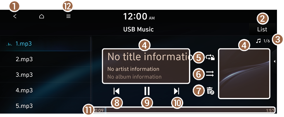 On the USB music playback screen, press