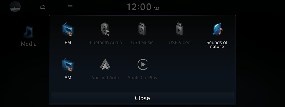 The media player runs when you play a music file from a connected audio device via Bluetooth.