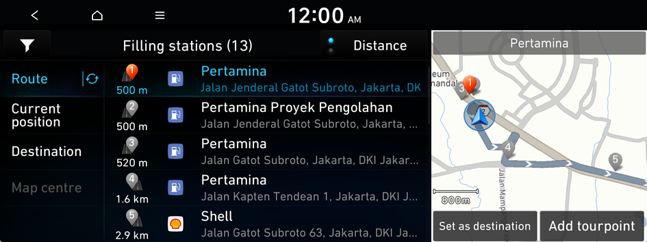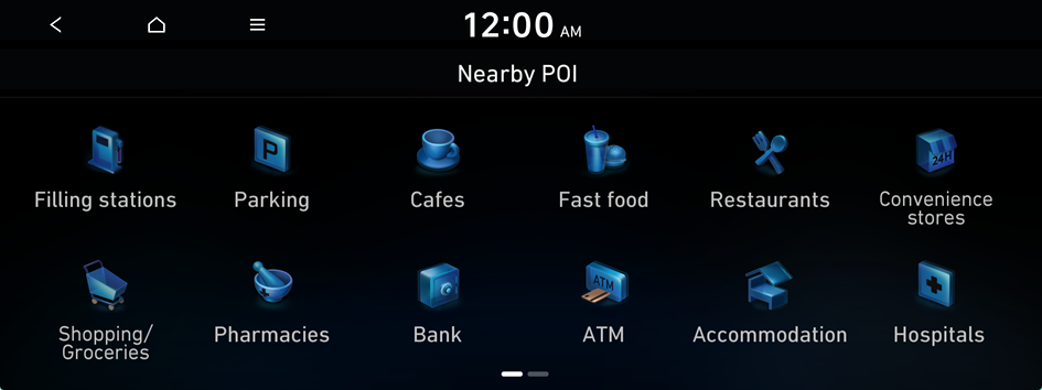 - On the Navigation screen, press Nearby POI ▶ Filling stations.