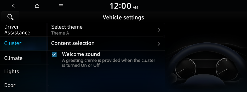 You can set the data to display on the instrument cluster and the volume and type for guiding beep.