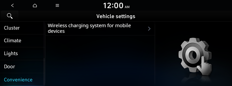 You can configure the features for convenience such as welcome sound and wireless charging.
