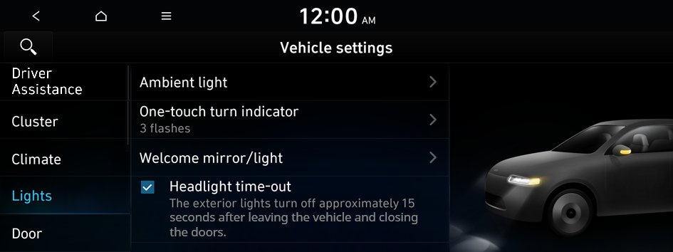 You can set to turn off the tail lights and Head lights in 15 seconds after turning off the vehicle to ensure visibility.