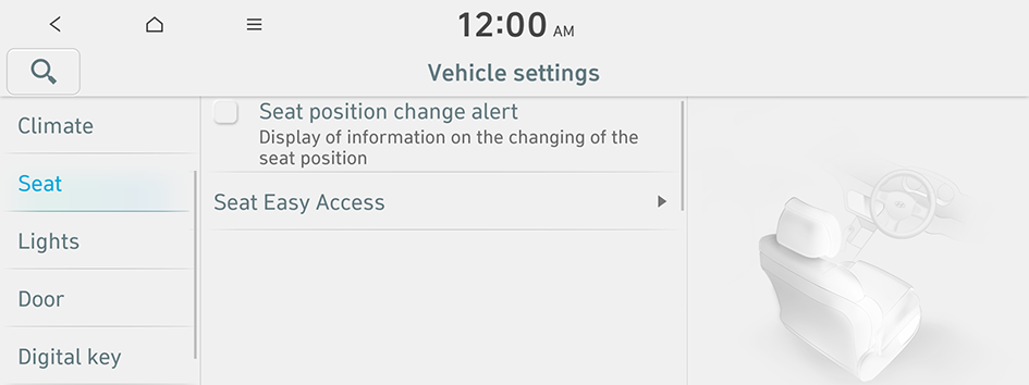 You can set the system to display a notification message along with the seat image on the screen when a seat position is changed.