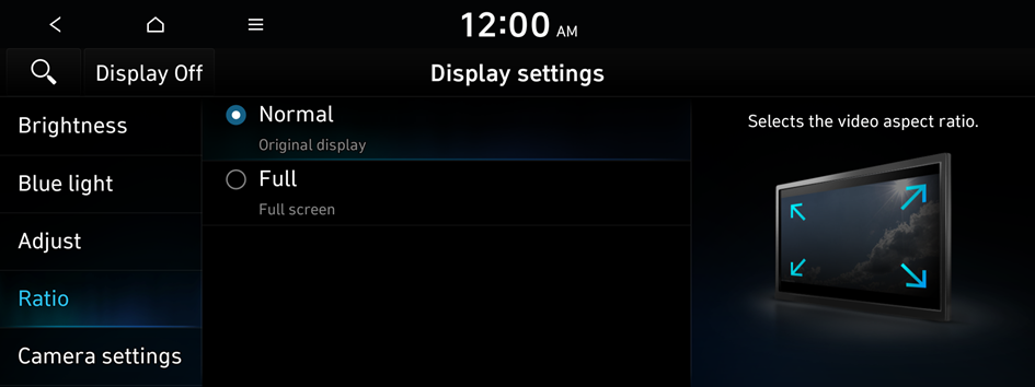 You can set the system to display video in the original aspect ratio or in full screen.