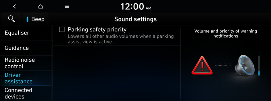 You can set to give priority to the proximity warning feature and lower all other sounds when parking your vehicle.