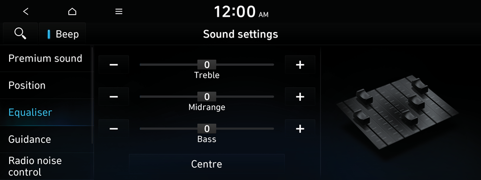 Press the sound effect button on the radio/media screen to adjust.