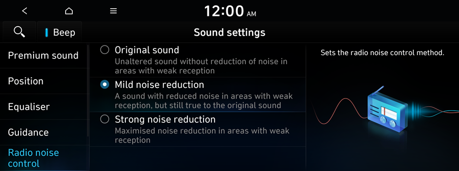 You can customise sound quality when listening to FM radio by adjusting background noise of the original sound.