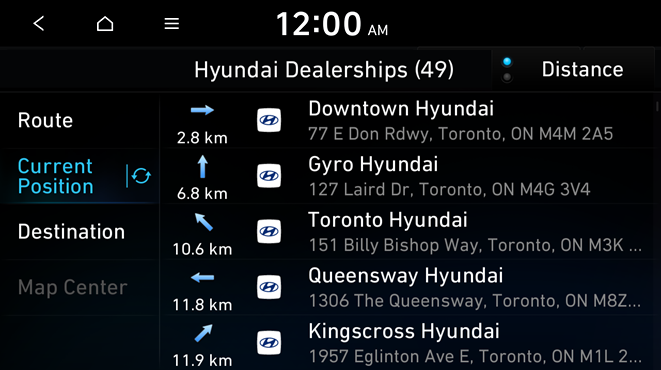 (route search screen not linked to connected car system)