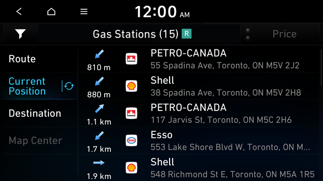 (route search screen linked to connected car system)