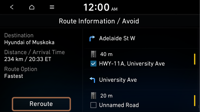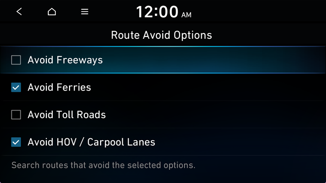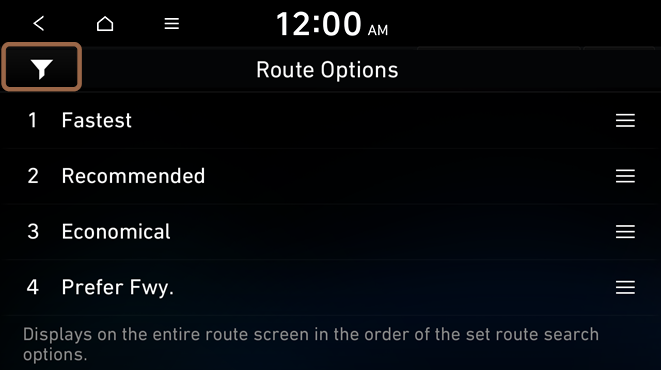on the right of the preferred search option to the desired position to change the priority. To select the avoidance route option, press