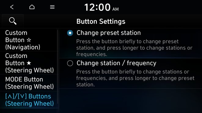 You can select the function to run when a specific button on the steering wheel is pressed while listening to the radio.