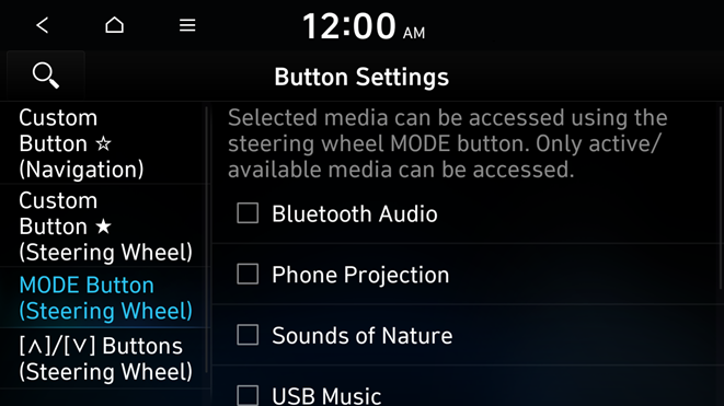 You can select the media mode to run when the button on the steering wheel is pressed.