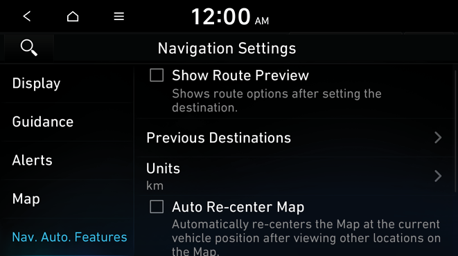You can set to automatically save the previous destination and display the previous destinations when the navigation system starts.