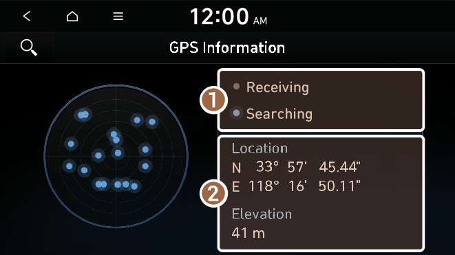 You can see the GPS satellite status and coordinates of the current position.