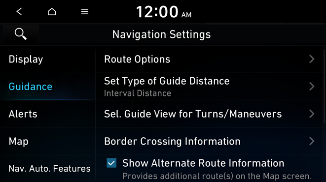 You can configure the navigation guidance settings.