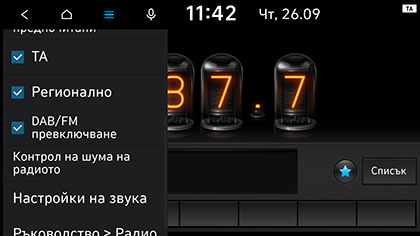 ] > Настройки на звука на екрана на радиото. За повече подробности вижте частта „Звук“.