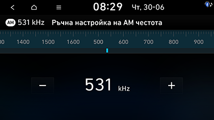 ] > Ръчна настройка на AM честота или Ръчна настр. на FM честота на екрана на радиото.
