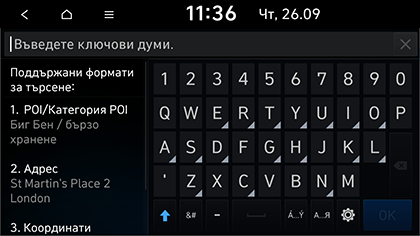 Въведете ключовата дума като например POI, POI категория, адрес, координати и натиснете OK.