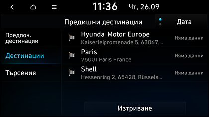 Натиснете Изтриване, за да изтриете предишните дестинации. Изберете желания елемент, след което натиснете Изтриване.