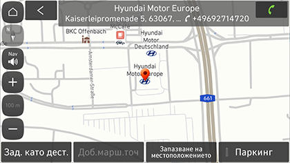 Можете да зададете обектите сервизи на Hyundai като дестинацията. Някои елементи в изображенията може да се различават от действителния екран, в зависимост от модела, опцията и държавата.