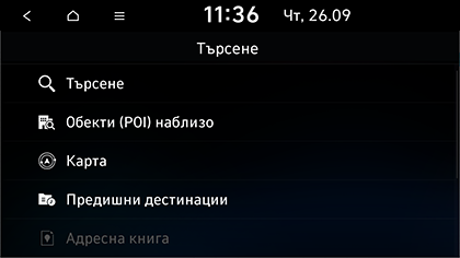 Дестинация: Търси POI в близост до текущата дестинация. Достъпно само когато дестинацията е зададена.