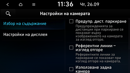 Избор на съдържание: Задава опция за изглед на указанията за паркиране.