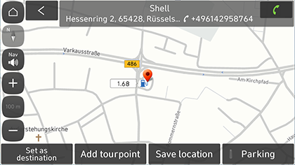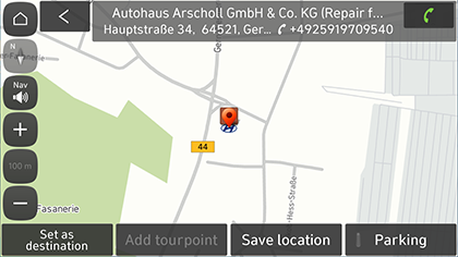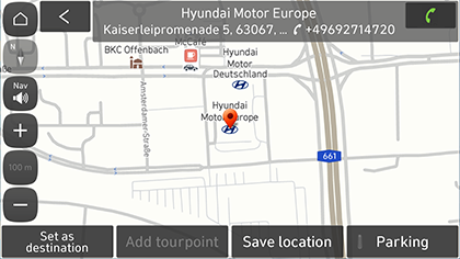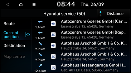 Destination: Cerca tallers Hyundai prop de la destinació actual. Només està disponible quan està definida la destinació.