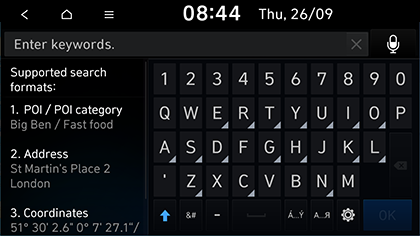 Introduïu les paraules clau (com ara PDI, categoria de PDI, adreça o coordenades) i premeu OK.