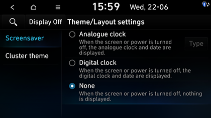 Screensaver: Permet seleccionar un estalvi de pantalla. Podeu seleccionar Analogue clock, Digital clock o None per mostrar a l’estalvi de pantalla.