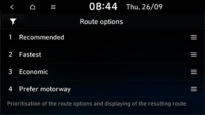 Podeu modificar diverses opcions de ruta en funció de les vostres necessitats. Assegureu-vos que el sistema estigui connectat a la xarxa. Route options només està disponible quan està definida la destinació.