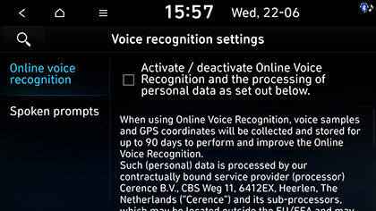 Premeu SETUP > Voice recognition.