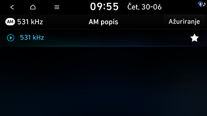 Pritisnite Ažuriranje u AM načinu za pretragu emitiranih postaja s izvrsnim prijamom.