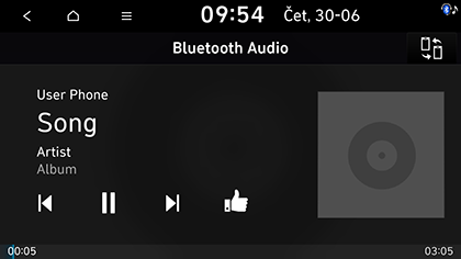 Pritisnite MEDIA na glavnoj jedinici. Prikazuje se zaslon za reprodukciju zvuka putem značajke Bluetooth.