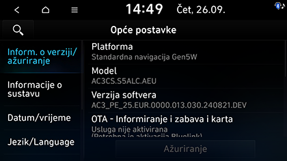 Možete pogledati verziju softvera, verziju firmvera, verziju aplikacije za navigaciju, verziju karte i ID uređaja.
