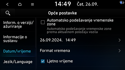 Automatsko podešavanje vremenske zone (Ako postoji): Automatski postavlja vrijeme na temelju trenutne lokacije vozila.