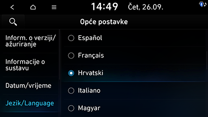 Za sigurnost softvera sustava, poboljšani softver, novododanu funkciju ili najnoviju kartu za sustav, potrebno je obaviti ažuriranje. Neke funkcije i slike mogu se razlikovati od onih na stvarnom proizvodu, ovisno o modelu, opciji i zemlji.