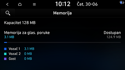 Možete provjeriti memorijski prostor za glasovne bilješke (ukupni prostor za pohranu, iskorišteni memorijski prostor, preostali memorijski prostor).