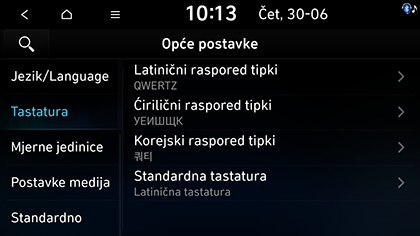 Latinični raspored tipki: Odabire QWERTY, QWERTZ, AZERTY ili ABCD.