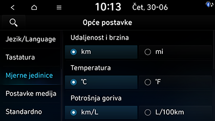 Ovaj se izbornik koristi za konfiguriranje jedinica koje se koriste u sustavu.
