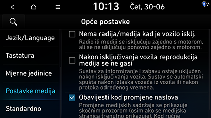 Obavijesti kod promjene naslova: skočni prozor s obavijestima o medijima prikazuje se kad god se sadržaj promijeni (osim ako je zaslon medija trenutačno prikazan). Međutim, pri promjeni zapisa pritiskom na funkcijsku tipku, informacije o mediju se uvijek prikazuju.
