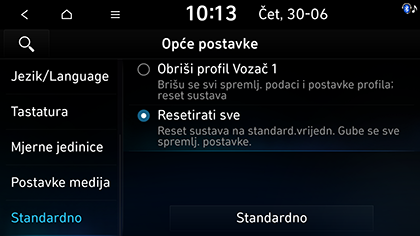 Možete resetirati trenutni profil ili cijeli sustav. Odaberite željenu stavku i pritisnite Standardno > Da.